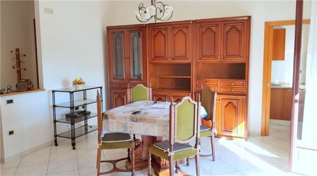 Consistenza dell'immobile: ingresso, soggiorno, cucina, corridoio, 3 camere, bagno, balcone e porzione di garage di circa 20 mq.