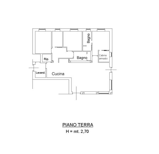 al piano primo appartamento con ingresso indipendente di 139 mq composto da soggiorno, cucina, corridoio, tre camere, due bagni, tre balconi di circa 30 mq e soffitta di circa 139 mq collegata all'appartamento tramite vano scala esclusivo.